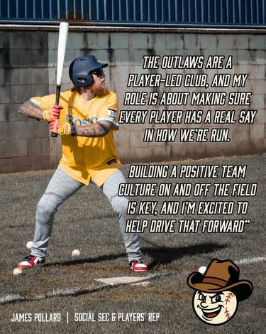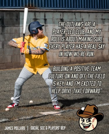 'STRONG GOVERNANCE AND TRANSPARENCY ARE AT THE HEART OF EVERYTHING WE DO AT THE OUTLAWS. I'M LOOKING FORWARD TO WORKING WITH THE LEAGUE AND FELLOW CLUBS TO STRENGTHEN AND GROW BASEBALL ACROSS OUR REGION'
